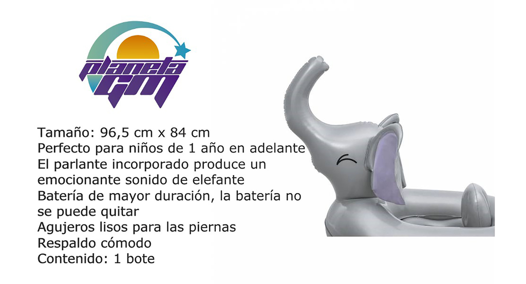 ¡Hay un elefante en la piscina este verano y se está divirtiendo mucho en el agua! Dale sabor a tu verano con este bebé elefante hinchable barco con altavoz incorporado.
