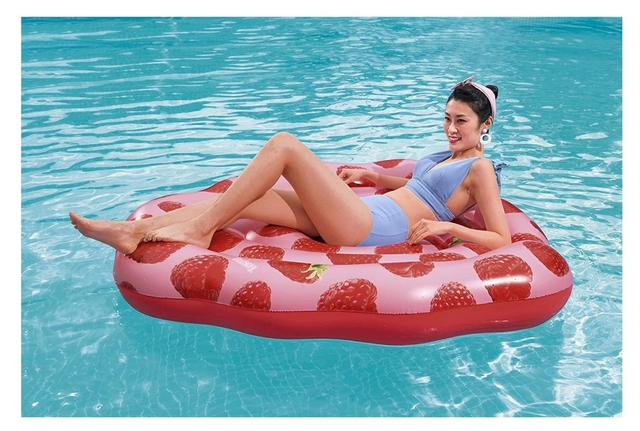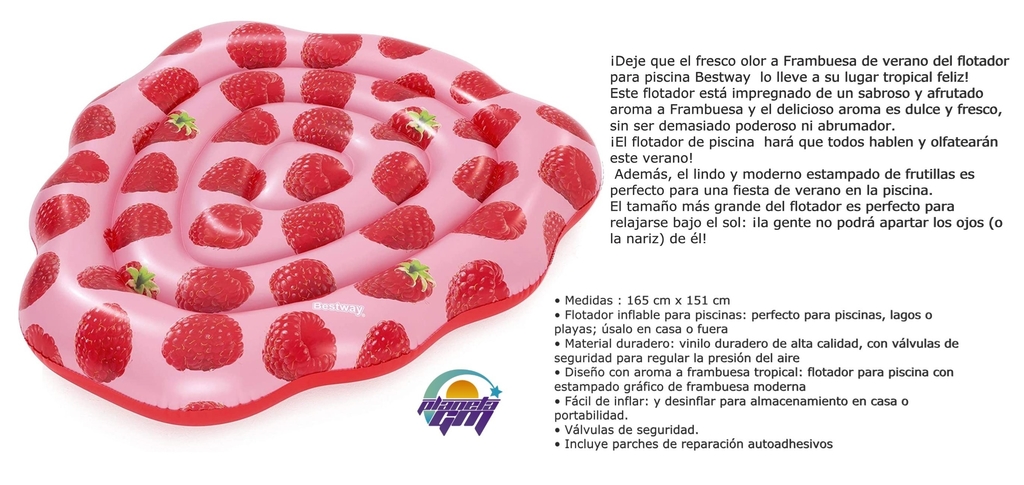 ¡Deje que el fresco olor a Frambuesa de verano del flotador para piscina Bestway lo lleve a su lugar tropical feliz!