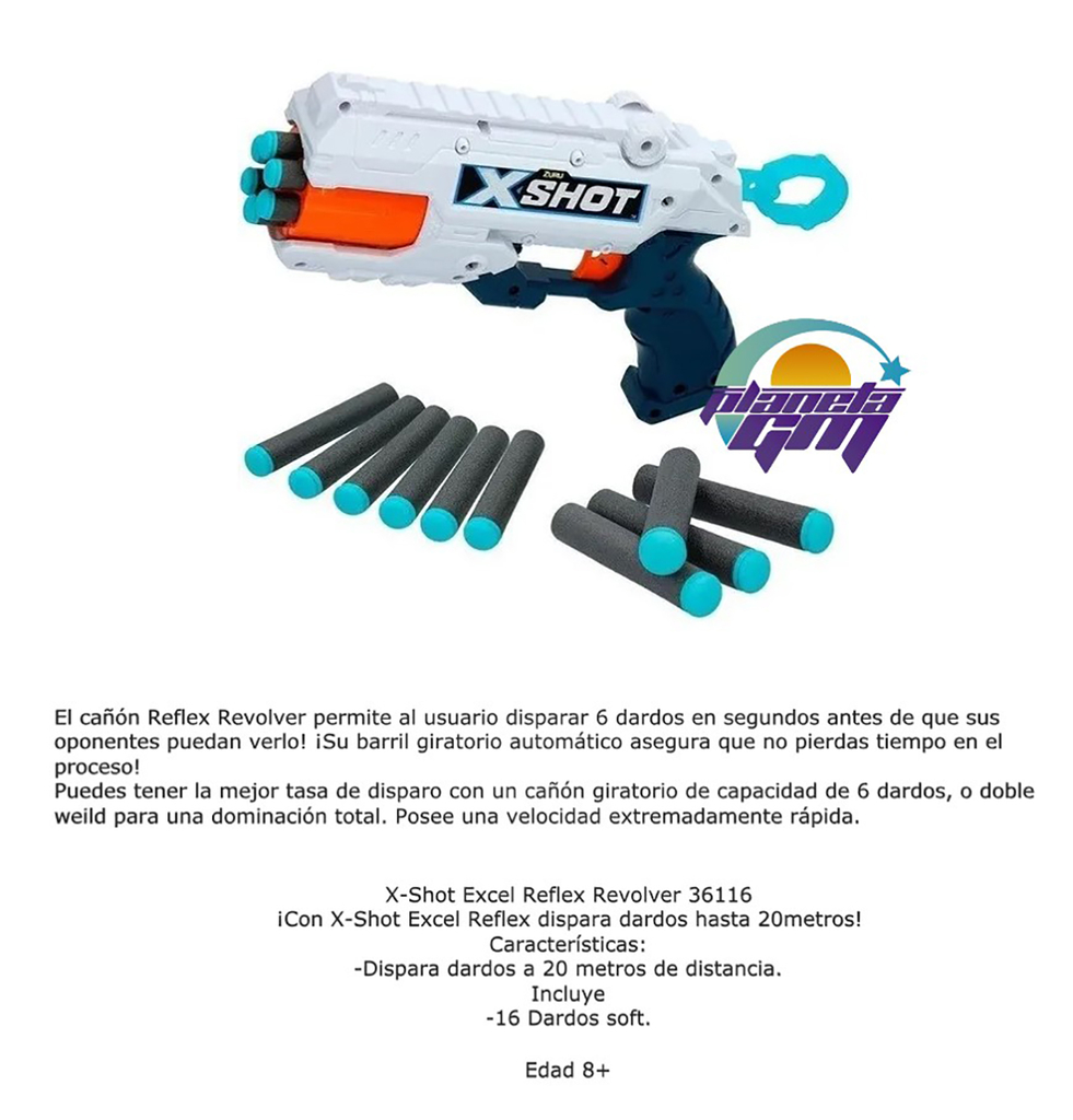 El cañón Reflex Revolver permite al usuario disparar 6 dardos en segundos antes de que sus oponentes puedan verlo! ¡Su barril giratorio automático asegura que no pierdas tiempo en el proceso!